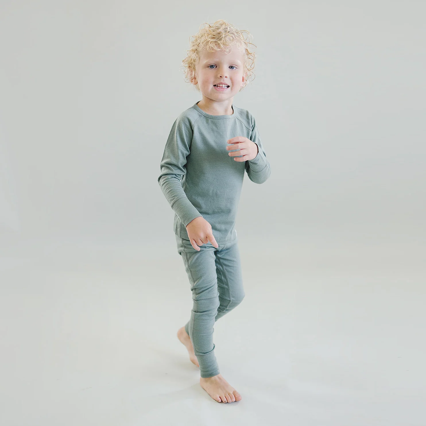 Kids Merino Wool Base Layer, Long Sleeve Top, Sage